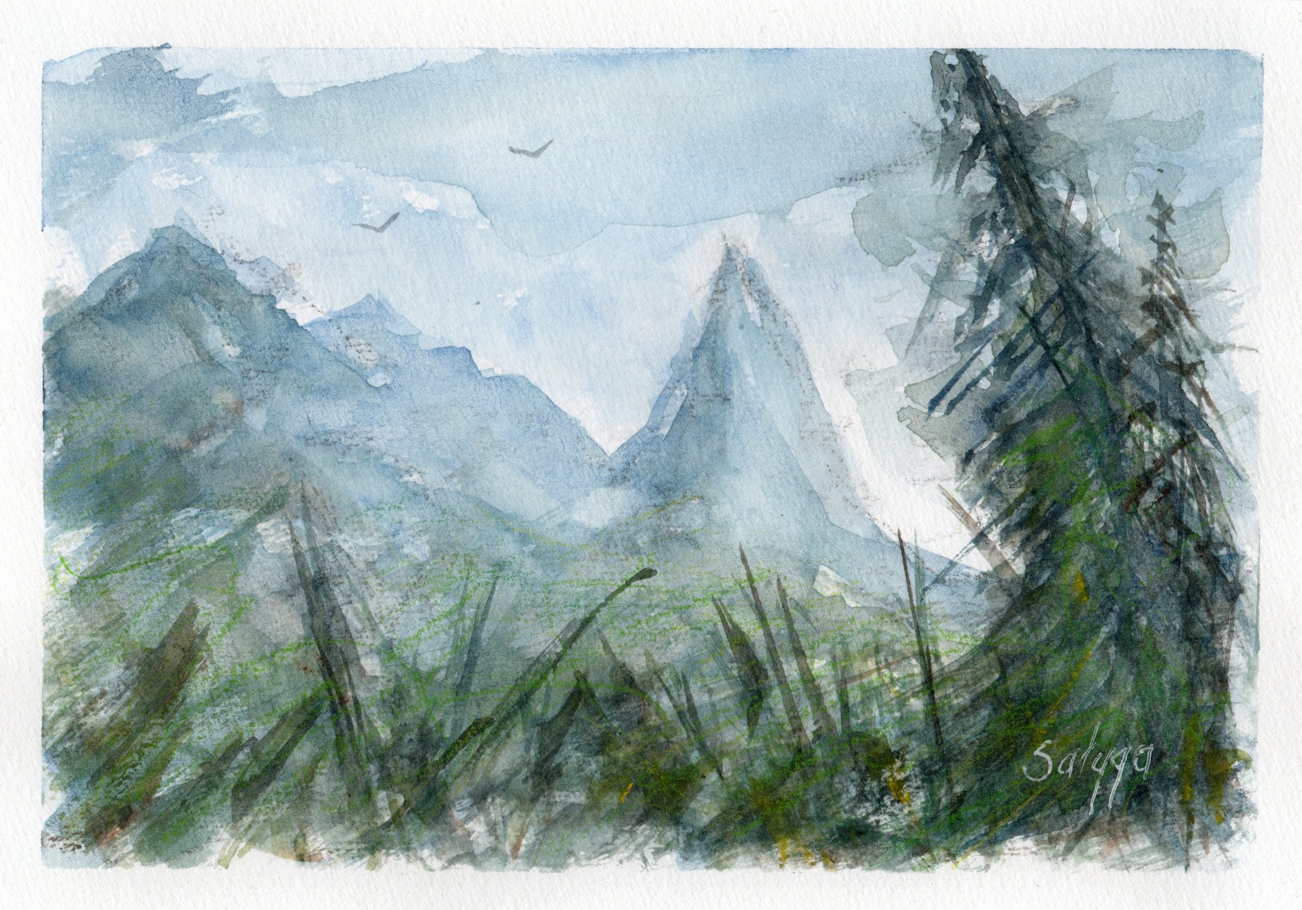Od kilkunastu lat maluję akwarelą, często łącząc ją z innymi technikami.
